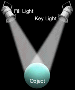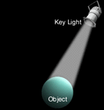When we shine a light on an object from a single point source of light it is called key light; it highlights contours on the object and creates shadows; the exact effect depends on the angle of the beam of light. Most of the time we want to light the object to we can see its front. In these cases, the light source may be best place in front of and to the side of the object at an angle of 45°.